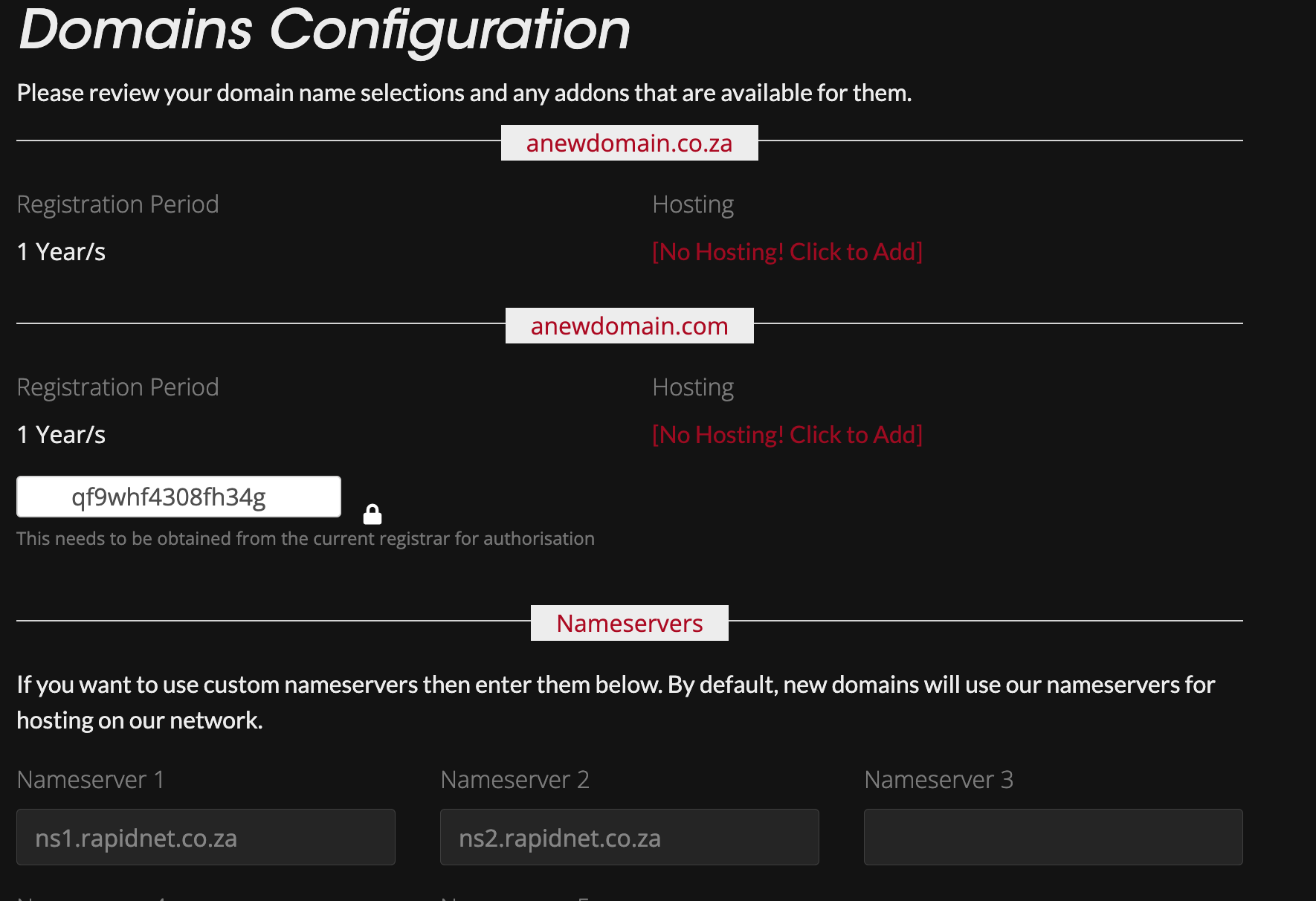 - Many domains don't need an EPP code like co.za