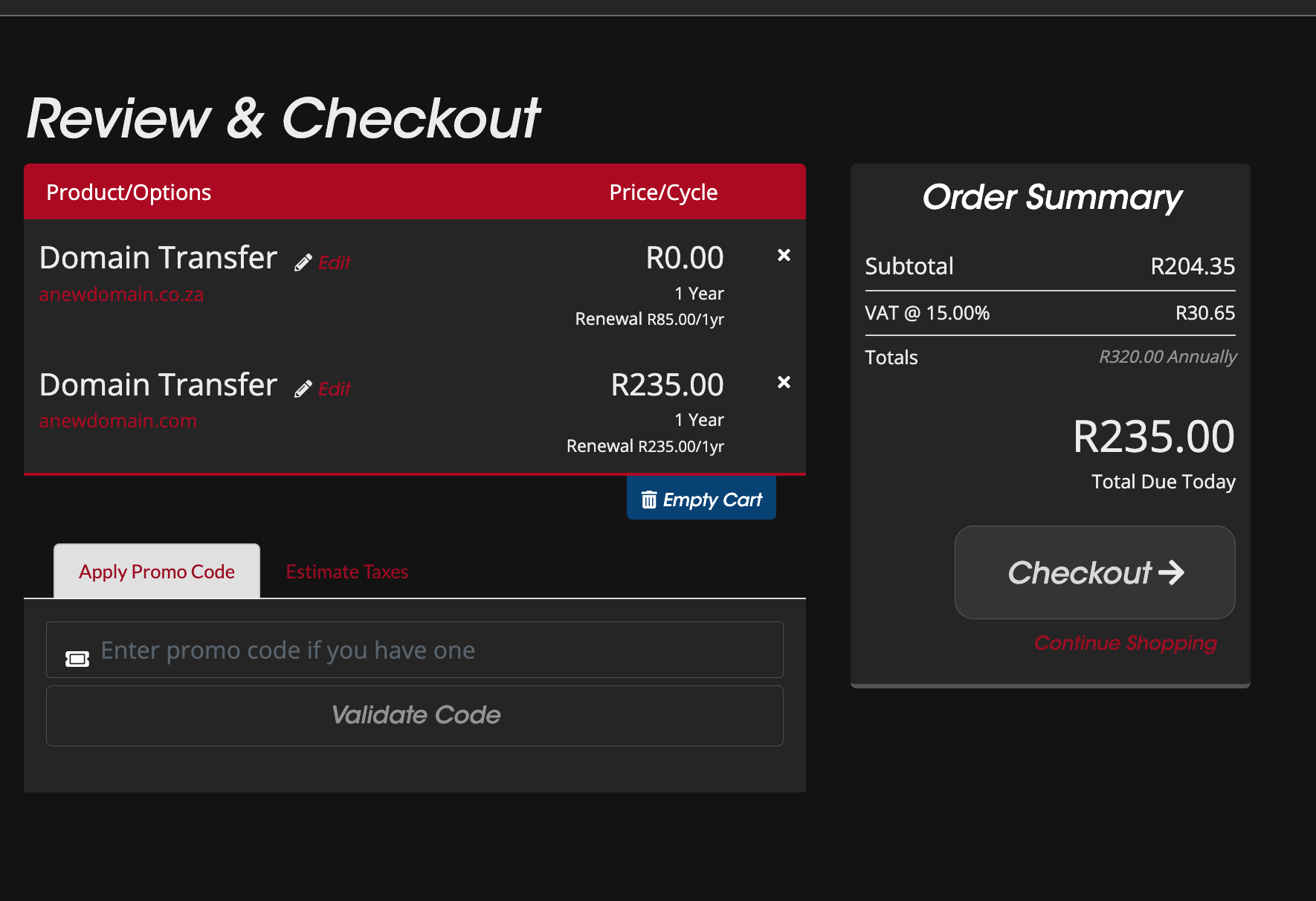 - After adding the domain to your cart, click on the "Checkout" button to proceed.