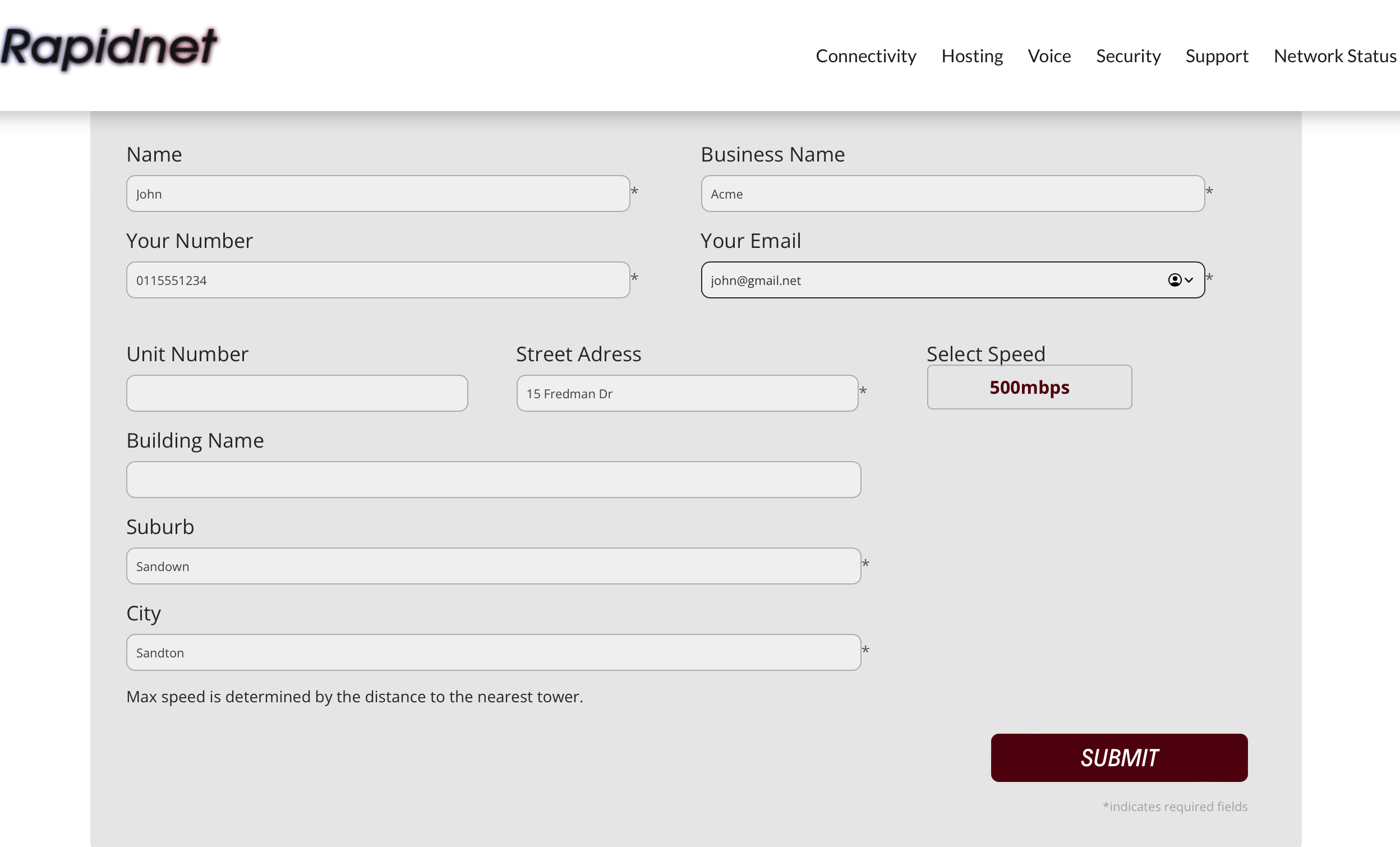 - Click on the appropriate option to express your interest in Rapidnet's business connectivity services.