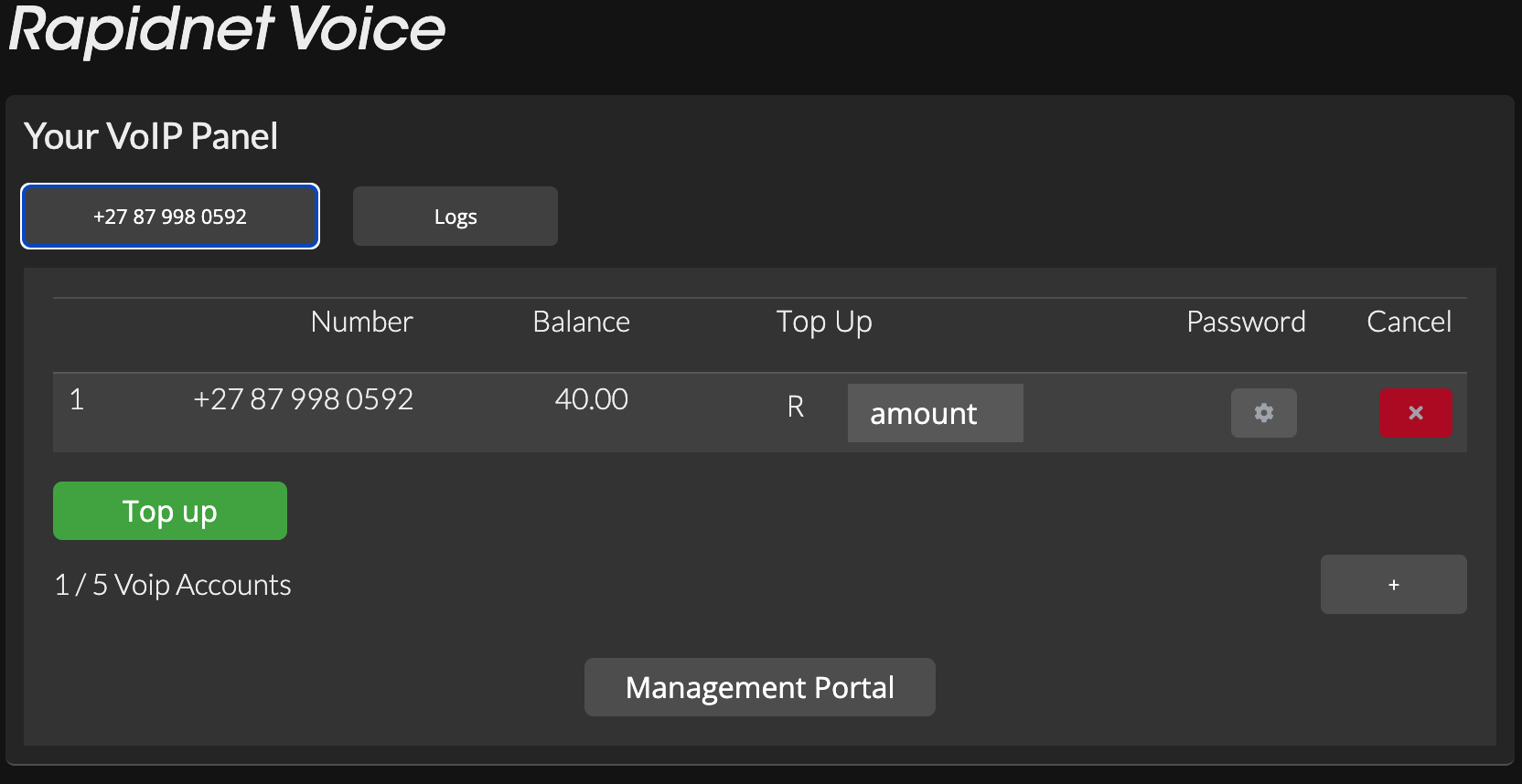 Once your Home Voice service is activated, you will find "Rapidnet Voice - Your VoIP Panel" in the Client Area of https://my.rapidnet.co.za. Within this section, you can manage your Voice service efficiently with the following capabilities: